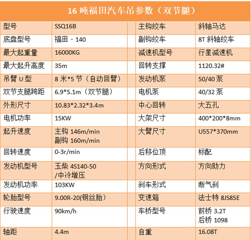 16噸福田汽車(chē)吊